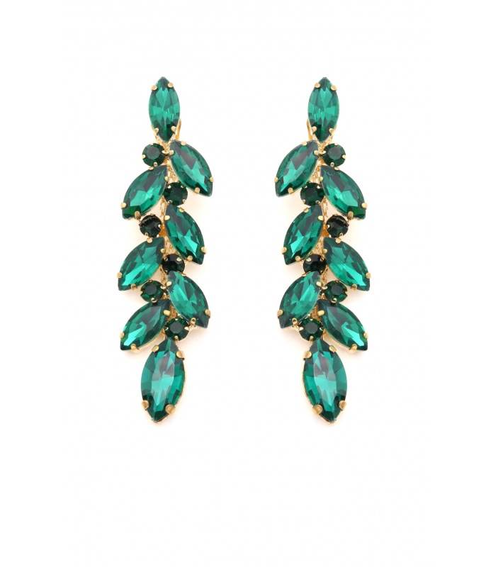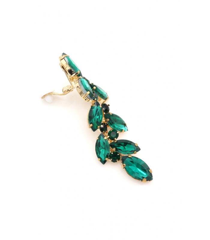 Hoe trek je moeiteloos alle aandacht? Deze oorclips stralen luxe uit met groene stenen in een elegante bladvorm. De gouden zetting versterkt de diepe kleur en maakt dit ontwerp perfect voor feestelijke looks of een chique diner-outfit.