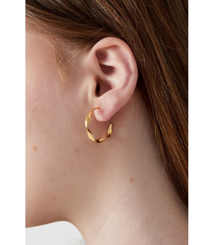 De zachte draai in het ontwerp creëert dynamiek zonder druk te ogen. Lichtgewicht en voorzien van een transparant clipsysteem voor optimaal draagcomfort. Combineer deze fashion oorbellen moeiteloos met zowel casual denim als een monochrome look.